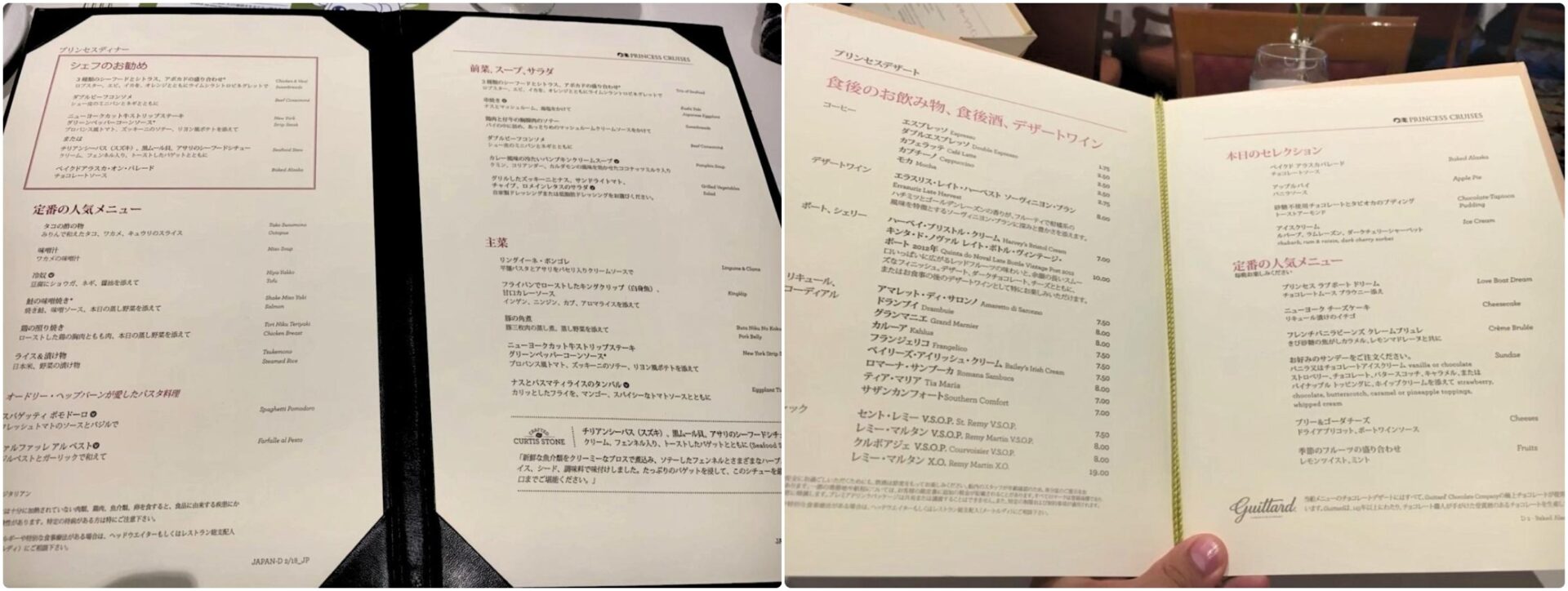 別のテーブルではクルーズ愛好家(←話しぶりからウン十回と行ってそう)の方が過去のクルーズ談義を他の方に延々としてて、聞いてるほうはちょっと辛そうだったのを見た、というのはここだけの話ということで、、、
